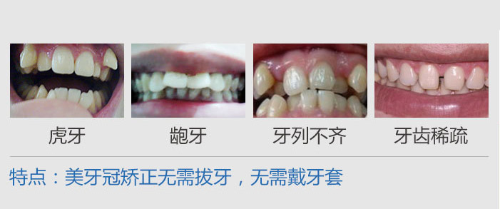 美牙冠是目前流行的美齿技术,能够对龅牙、排列歪斜牙、畸形牙以及色素牙先进行矫治,再通过美牙冠加以矫正修复,具有美牙不拔牙,快速矫正等特点。