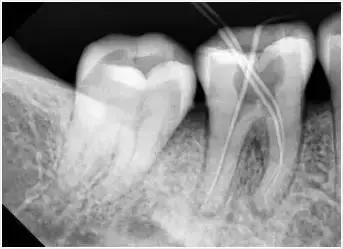 X光片显示根管充填完好,可进行暂时或永久牙体修复,带上牙冠,保护患牙。至此根管治疗才可算完成,同时根管治疗后还需复诊,一般周期可为3个月、半年、1年、2年或更长。