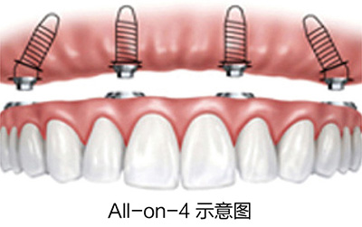 所有全口、半口无牙颌病人都是All-on-4的适应人群,过去全口或半口等牙列缺失的患者往往要接受植骨手术,承担多次手术和较长的愈合期,All-on-4技术真正做到即使在骨量严重萎缩的情况下,也可利用斜行植体等技术,避免植骨手术。