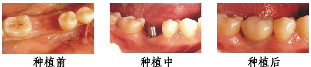 选择适合的种植体,将种植体缓缓植入已备好的种植窝内并小心地用特制工具加力旋紧,使种植体顶缘与骨面相平,牙骨髓更快速与种植体愈合。